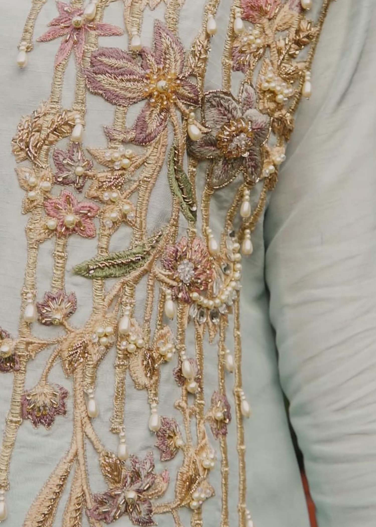 EVOKE A SENSE OF MAGNIFICNCE & REFINED ELEGANCE WITH OUR LATEST LEGACY CREATION ,ALLURE - A SLEEK OF SHORT SHIRT TAILORED ON GORGEOUS KOREAN RAW SILK ADORNED WITH EMBELLISHED NECKLINE .ENHANCE THE BEAUTY OF THE LOOK BY ADDING GORGOUS ORGANZA DUPATTA.