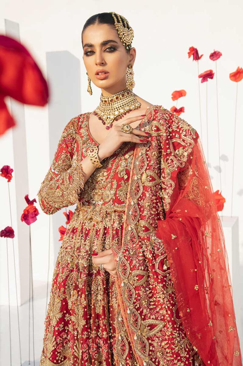 Rosewood is heavenly adorned classic pishwas made on Net with cut stone work in gold and silver embelishments such as kora, dabka, pearls and stones with a bit of 3-d Flowers to add depth in the overall look of an outfit. The pishwas having a deep neck, which is perfect for your big day. Shiza Hassan Bridals are the perfect fit for the bride who wants to feel like a modern maharani on her big day. Dainty hand embellishments, soft feminine colors and the perfect blend of traditional craft and modern sensibility are the hallmarks of our bridal couture.